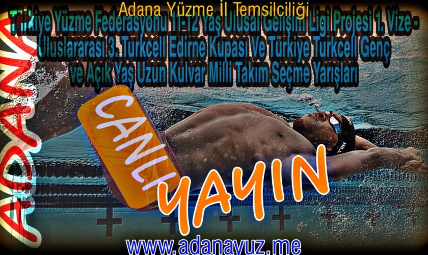 Türkiye Yüzme Federasyonu 11-12 Yaş Ulusal Gelişim Ligi Projesi 1. Vize – Uluslararası 3. Turkcell Edirne Kupası Ve Türkiye Turkcell Genç ve Açık Yaş Uzun Kulvar Milli Takım Seçme Yarışları Canlı Yayın Sayfası’na hoş geldiniz. Katılan sporcu sayısının, pandemi koşullarına uygun olarak gerçekleştirilmesi planlanan müsabakada, havuz tribünleri seyirci kapasitesine yakın olması nedeniyle bu müsabakada seyirci alınamayacaktır. Yarışmaya ait start listelerinin indirilebilmesi için link aşağıda verilmiş olup müsabaka için start listesi basılmayacaktır. Anlayışınız için teşekkür ederiz.